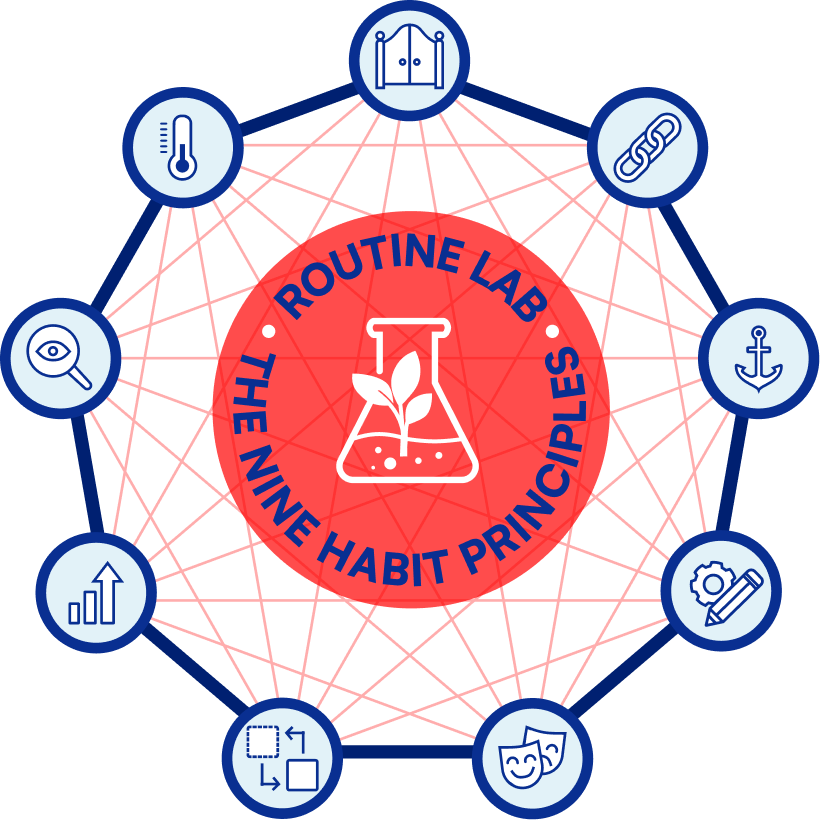 The Routine Lab framework is built around nine behavioral principles that work together to support reliable habit change.Human behavior is complex, but changing behavior does not have to be complicated.The RoutineLab framework was designed to combine multiple behavioral levers into a single integrated system.Each principle influences behavior in a different way, and when used together they reinforce and amplify one another. Instead of relying on a single tactic, the framework activates several complementary mechanisms at once.